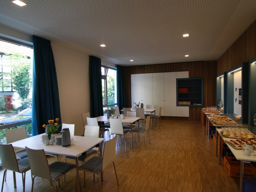 Eröffnet wurde unser Gemeindehaus im Frühling 2014. Seitdem stehen uns für unsere Veranstaltungen der Gruppen und Kreise 3 Gruppenräume zur Verfügung. Für unsere großen Veranstaltungen, wie z.B. die Gemeindeversammlungen, der Mitarbeiterempfang, das Osterfrühstück oder das Kino im Gemeindehaus, nutzen wir den neuen großen Gemeindesaal.