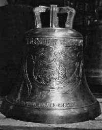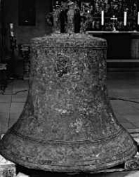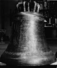 (Übersetzung: Diese Glocke wurde im Jahre Des Herrn 1442 gegossen, [beim Einsturz des Turmes] im Jahre des Herrn 1811 zerstört, von neuem gegossen im Jahre des Herrn 1869, im Kriege, im Jahre des Herrn 1917 eingeschmolzen, aus Eisen wieder hergestellt im Jahre des Herrn 1922, zur höheren Ehre Gottes von neuem gegossen und erweitert im Jahre des Herrn 1996.)